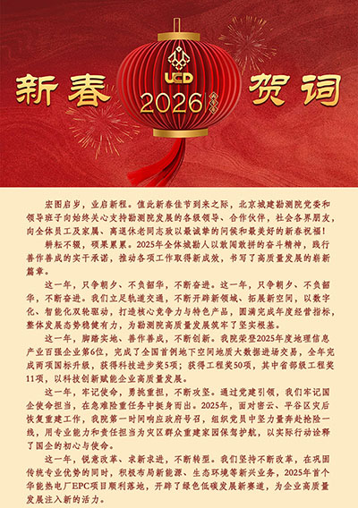 宏图启岁,业启新程。值此新春佳节到来之际,北京城建勘测院党委和领导班子向始终关心支持勘测院发展的各级领导、合作伙伴,社会各界朋友,向全体员工及家属、离退
