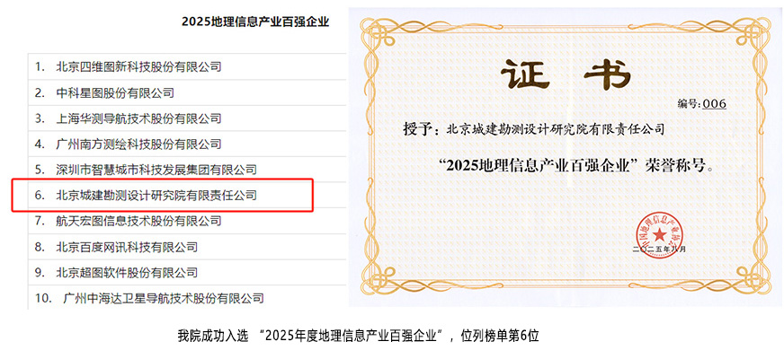 根据中国地理信息产业协会综合评定,我院成功入选 “2025年度地理信息产业百强企业”,位列榜单第6位,此次排名较往届实现显著跃升,标志着我院在地理信息产业领域的市场竞争力、业务规模与行业影响力持续提升,已成为推动产业发展的重要力量。